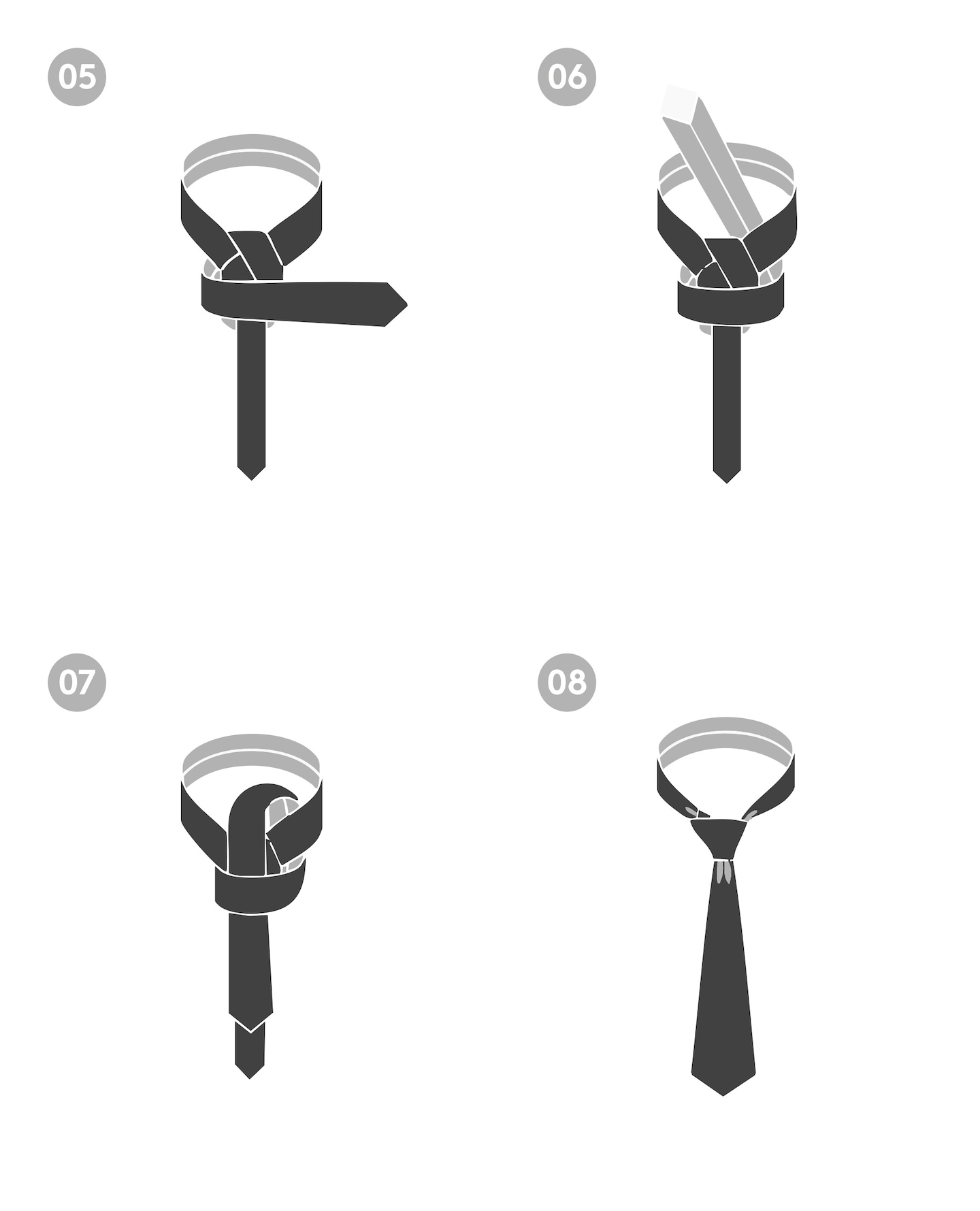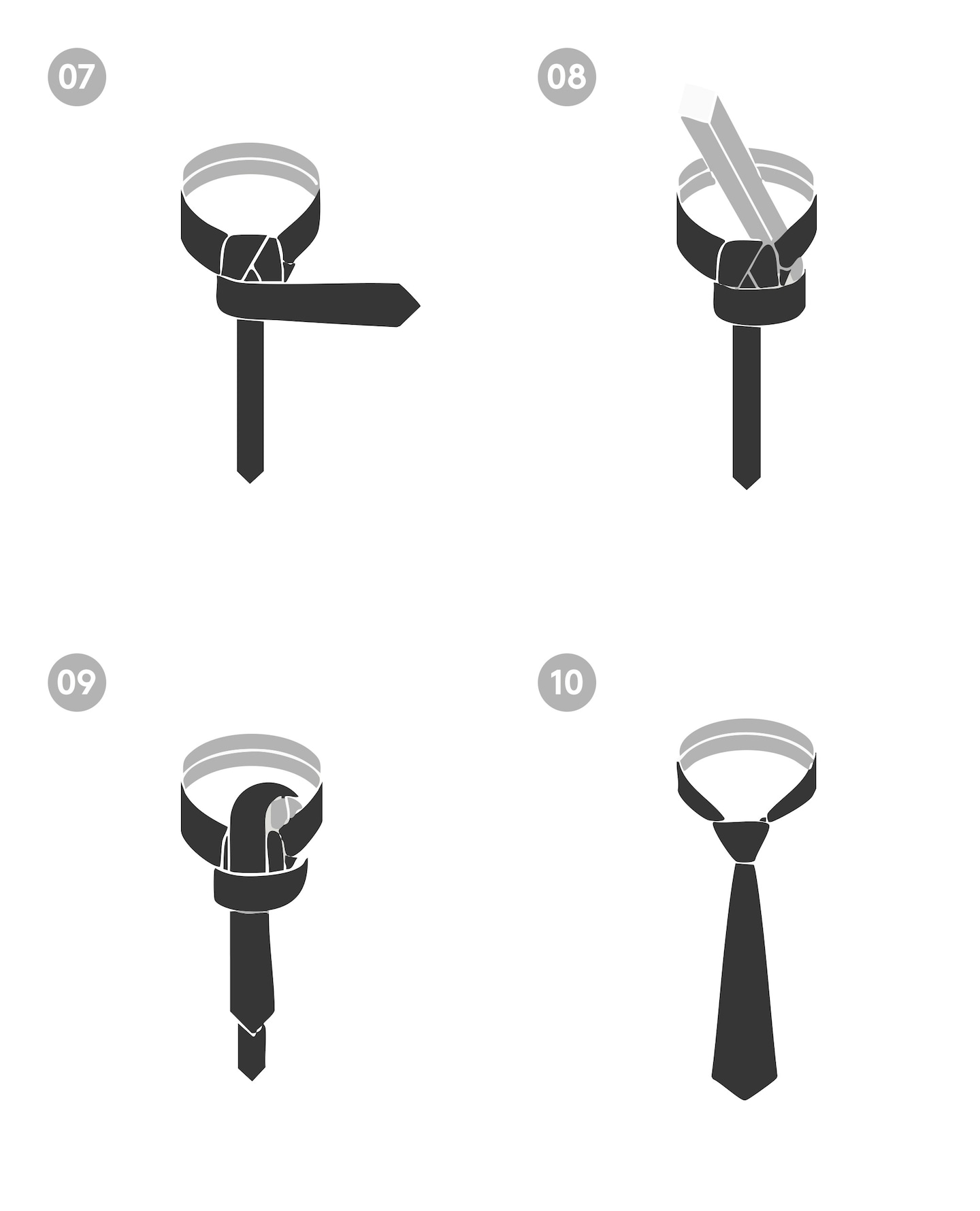 08: Tighten the knot by holding the narrow end and sliding the knot up to your collar.