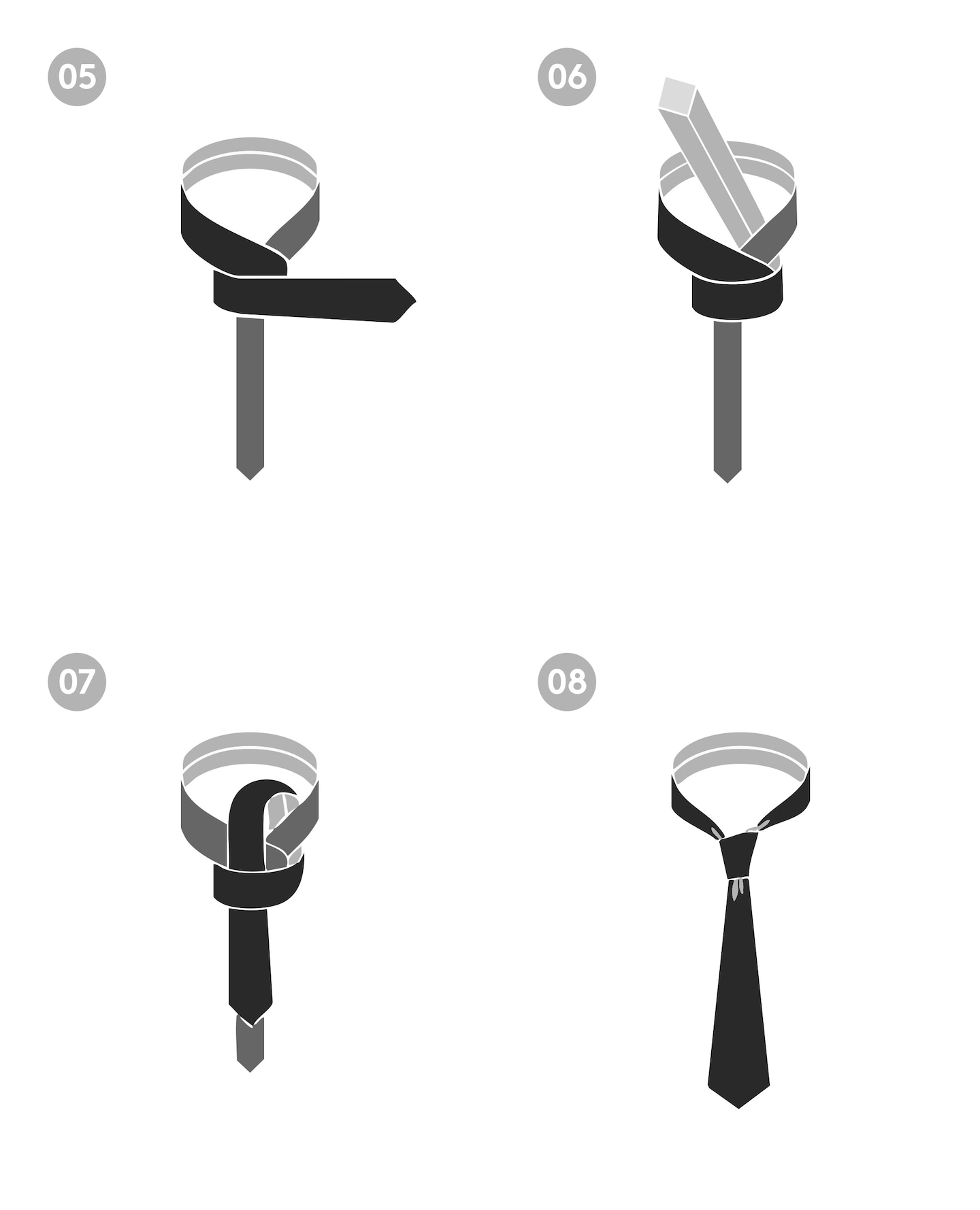 04: Bring the wide end down through the back of the narrow end from right to left.