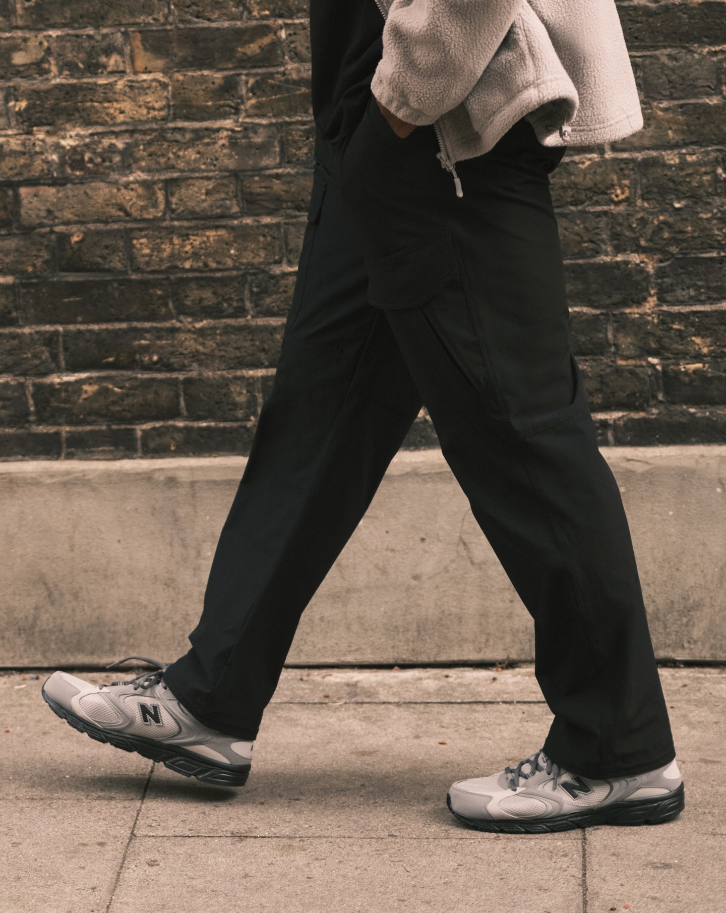 To keep the look modern, you’ll want to balance the bulk of the side pockets with a more fitted top, like a crew-neck t-shirt or a slim-fit overshirt - this will stop your silhouette from looking oversized.
