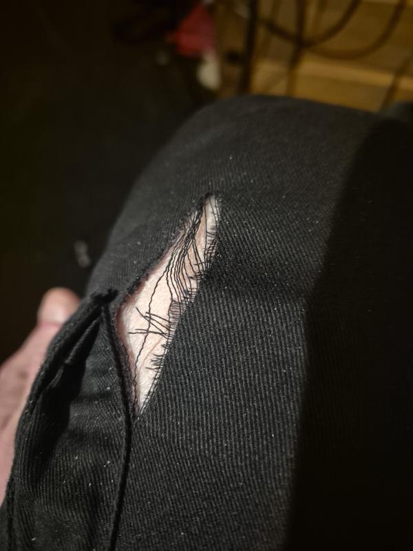 i wore them twice and they have split just above the knee. the split is around 3 inches long and happened while sat at my desk. Th...All good